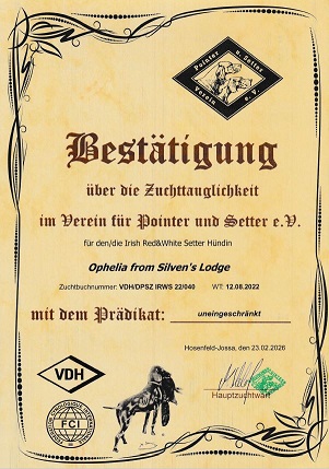 Uneingeschränkt Zuchttauglich bewertet.
