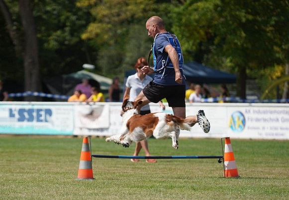 Kieran mit Clément auf der Brussels Dog Show sehr