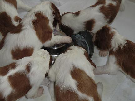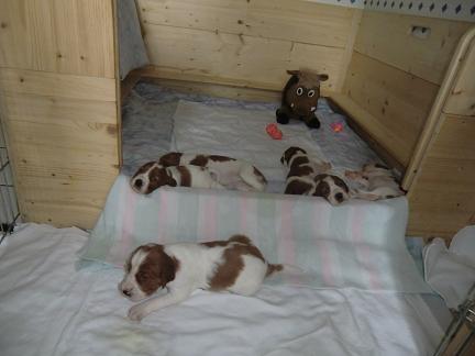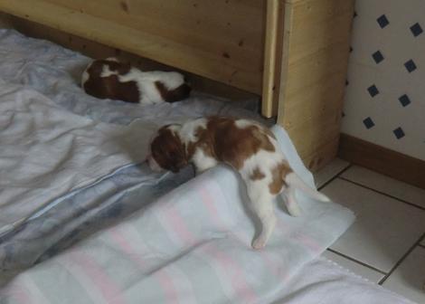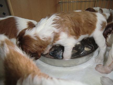 Die Welpen beginnen schon auf