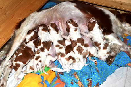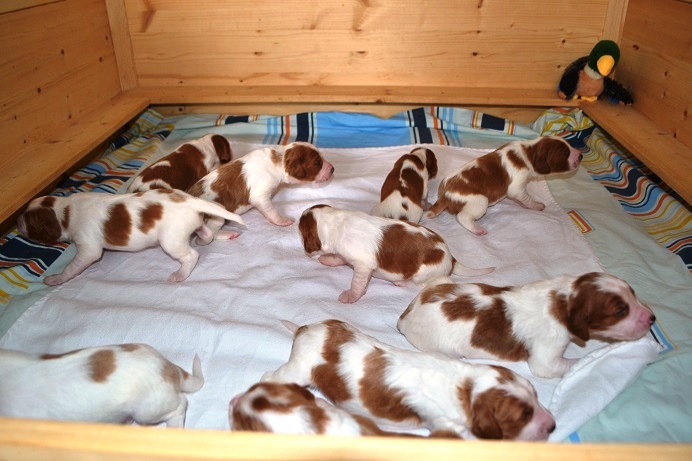 Woche, nachdem die Kleinen geimpft wurden und die Wurfabnahme